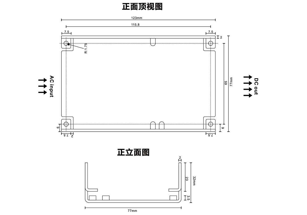国际通用全范围交流输入; 可承受300vac浪涌输入5秒; 工作温度可高达70℃; 保护种类:短路/过负载/过电压; 自然风冷; 高效率,高寿命和高可靠度; 电源启动LED指示灯; 100%满载老化测试; 3年保固;应用: